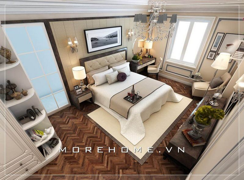 Gợi ý thiết kế giường ngủ phòng master phong cách tân cổ điển cho biệt thự cao cấp