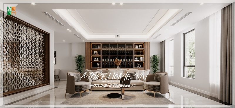 Tủ kệ có diện tích rộng, chất liệu gỗ sang trọng, giúp tối ưu hóa quá trình sinh hoạt gọn gàng và trang trí đẹp cho phòng khách.